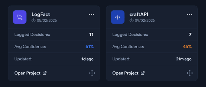 Whether you’re shipping features, scaling infrastructure or guiding client projects, LogFact gives you a structured way to capture the reasoning behind every important choice so clarity doesn’t disappear over time.